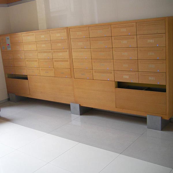 (8)、樓房信報箱還可以設置臨時寄存箱,若遇臨時有事,有重物拎在手上不方便,又不想費時間送回樓上家中,可用 ID 或 IC 卡開啟,放于箱內(nèi),取件時只要用卡一刷該寄存箱即可自動打開,安全又省事。